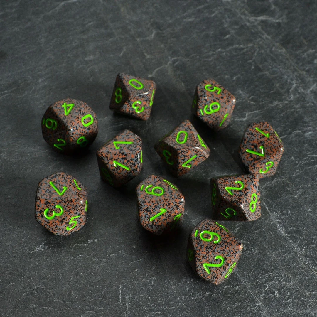 Set of 10 Speckled D10 Dice in the colour Earth from Chessex.
