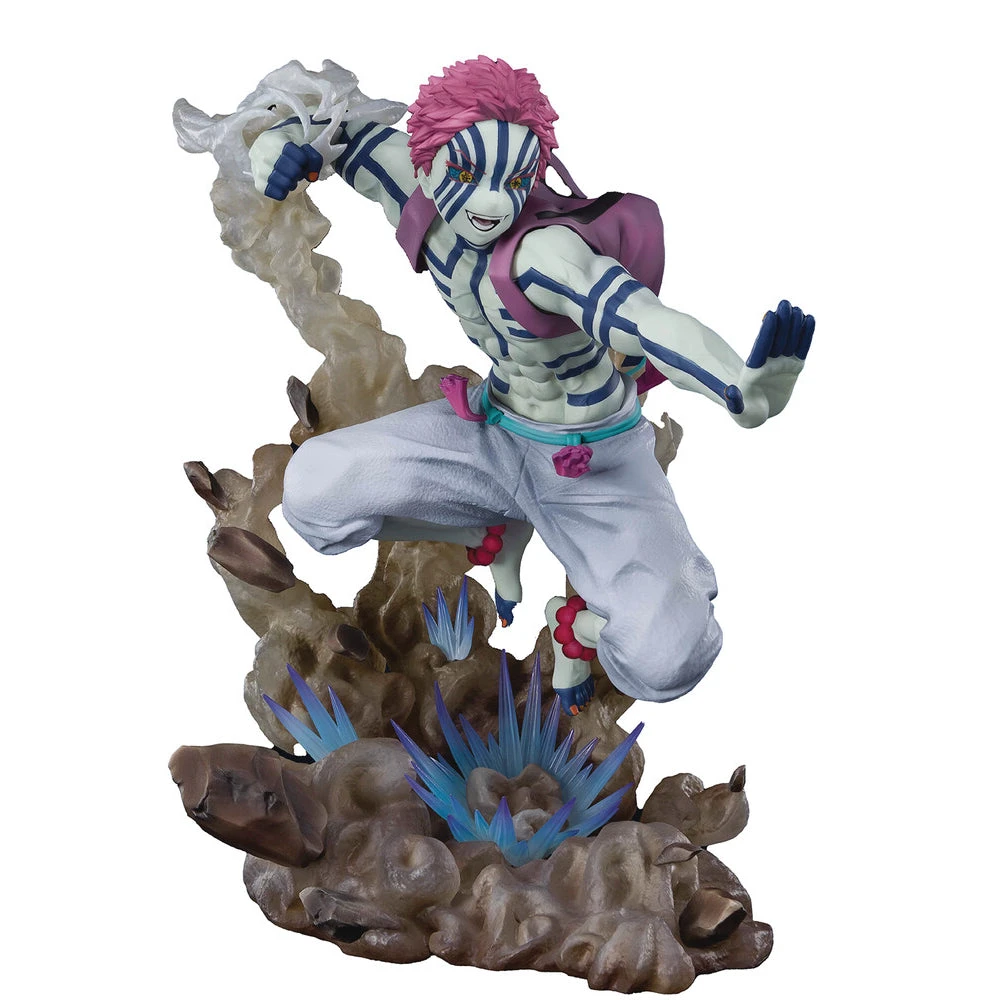 Akaza Upper Three joins FiguartsZERO! This fixed-pose figure captures the drama of Akaza’s battle against Kyojuro Rengoku at the climax of “Demon Slayer Kimetsu no Yaiba the Movie Mugen Train”! This fixed-pose figure puts you in the middle of the action, capturing Akaza’s fierce expression in three dimensions.