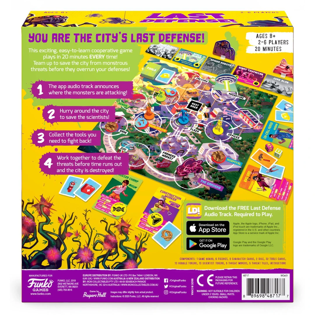 This exciting, easy-to-learn cooperative game plays in 20 minutes every time! Team up to save the city from monstrous threats—from space aliens and spider robots to an oozing building-sized blob! As you race around the city rescuing scientists and collecting tools, the app audio track provides urgent news bulletins announcing where the latest threats are attacking. You are the city’s last defense! Gameplay Features: • Fast-paced game perfect for players who can think on their feet • Free downloadable app enhances the experience and drives the action • Diverse and sculpted figures give each character their own unique attitude • Animation-style artwork and illustrated threat movers add to the animated feel of the game • A quick, frantic, fun game experience for the entire family! Highlights: • Cooperative board game • Suggested for ages 8 years and up • Number of Players: 2-6 Players • Playing Time: 20 minutes Game Contents: • Game Board • 6 Character Figures • 6 Character Cards • 32 Tools Cards • 13 Rubble Tokens • 13 Scientist Tokens • 5 Threat Movers • 5 Threat Tiles • 2 Dice • Instructions.