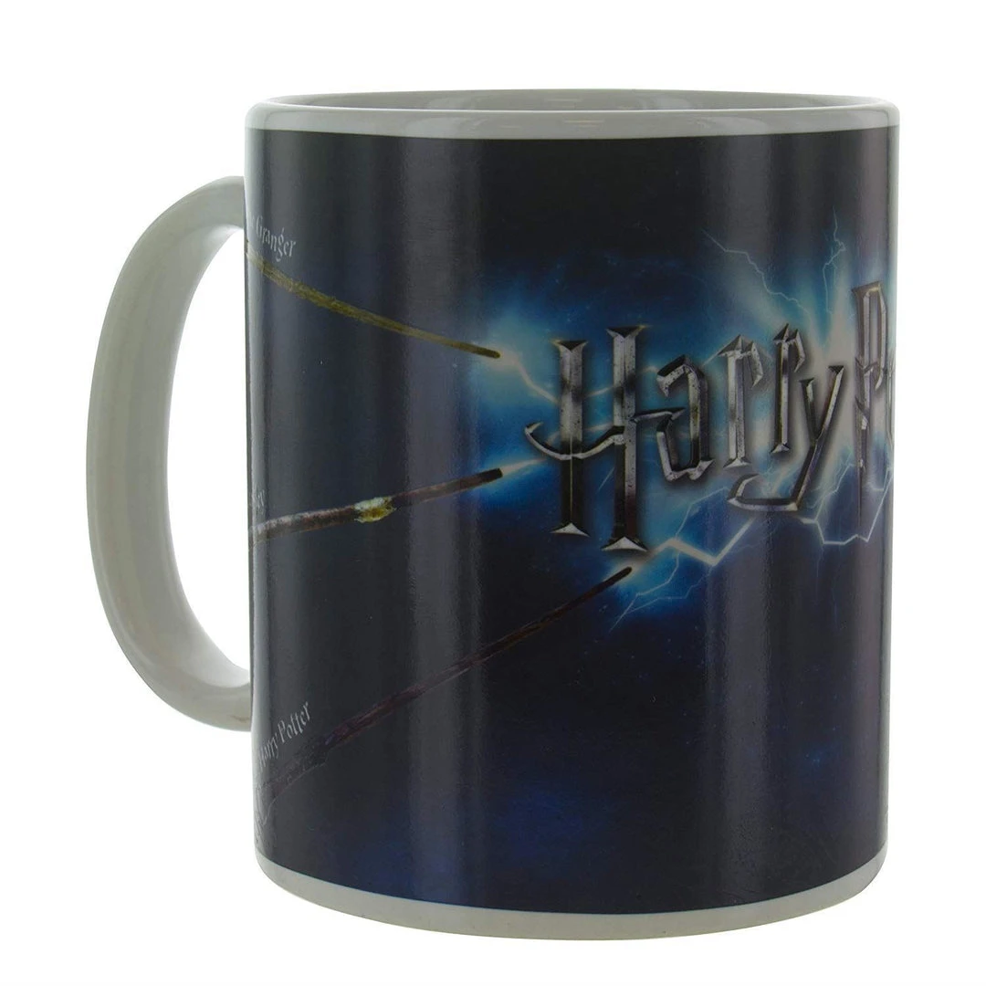 Pour your favourite hot beverage into the Harry Potter Magic Wand Heat Change Mug and watch as it magically transforms before your eyes. When cold, this standard sized mug is dark. However, as soon as this mug is warm the wands of Harry, Hermione and Ron spark into action firing bolts of magic, illuminating the official Harry Potter logo. This is the perfect gift for lovers of the Harry Potter franchise and makes a great accompaniment to your next tea-break. The Harry Potter Magic Wand Heat Change Mug is great for use at home, at work or at school. Capacity: Standard Size Size: 8 x 8 x 12 cm