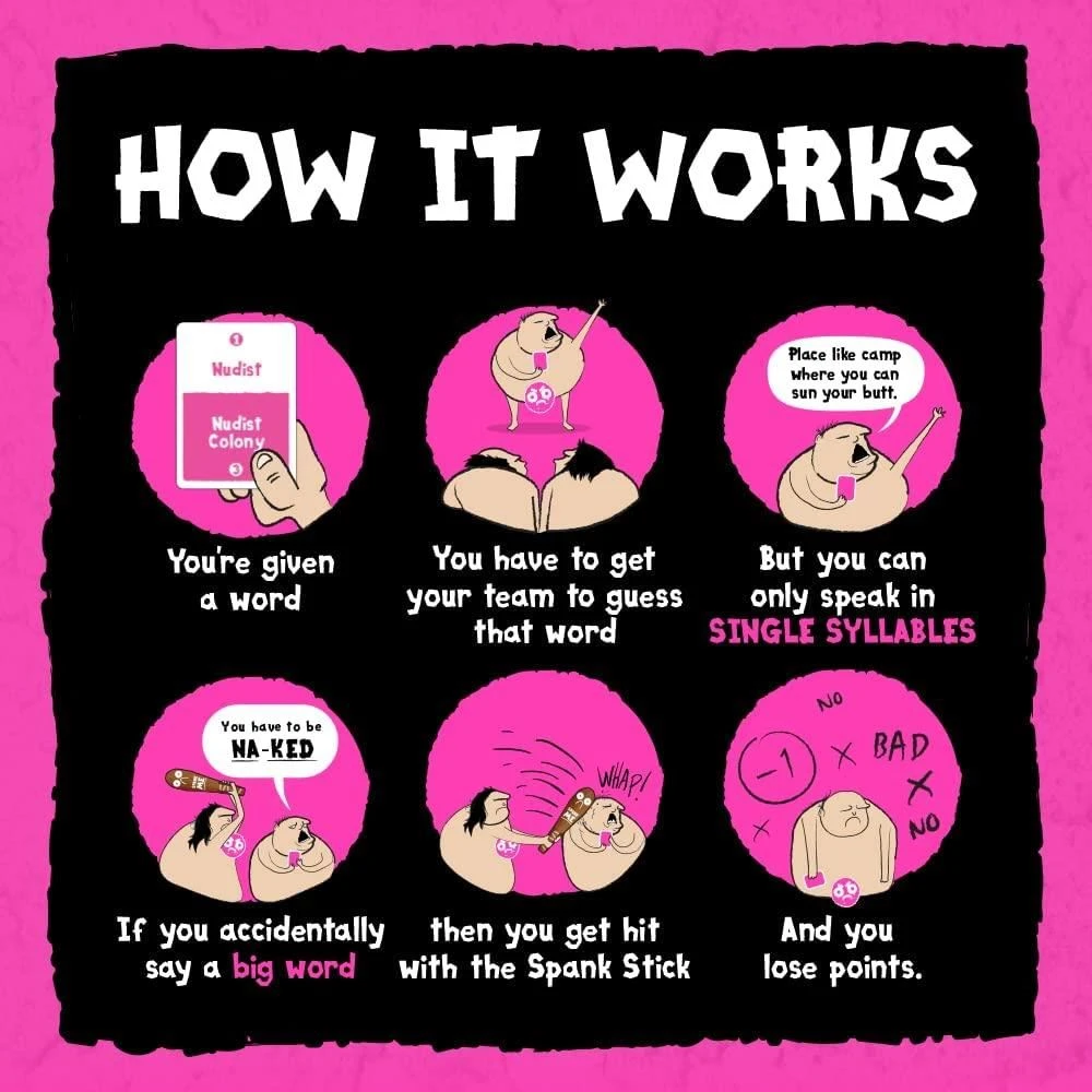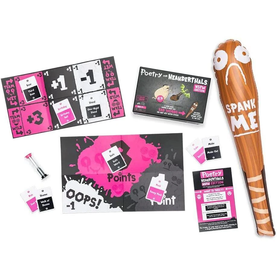 Poetry for Neanderthals: NSFW Edition is an adult party game similar to Taboo where players earn points by getting their teammates to guess words and phrases. The catch is that they are only allowed to use single syllable words. Enjoy getting grandma to guess phrases like “nudist beach,” “mile high club” or “banana hammock,” but be careful. If you use any words with more than one syllable, the other team gets to spank you with the 2-foot inflatable Spank Stick. But maybe that’s not such a bad thing?