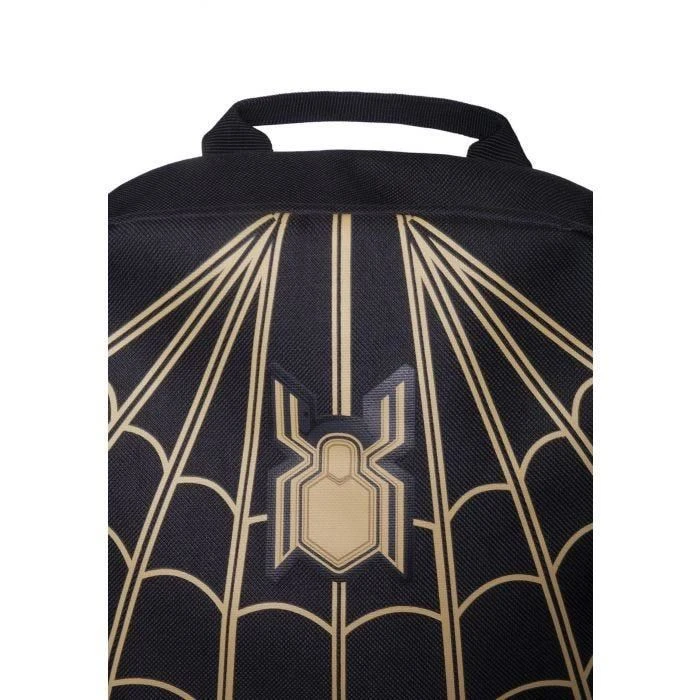 Feel like you fit in as a student like Peter Parker while carrying this backpack with screen-printed web and spider graphic on the front, matte printed rubber patch on the front pocket, polyester lining, woven iconic label in the strap, quilted foam back and padded laptop sleeve for 17-inch laptop in the interior sleeve.