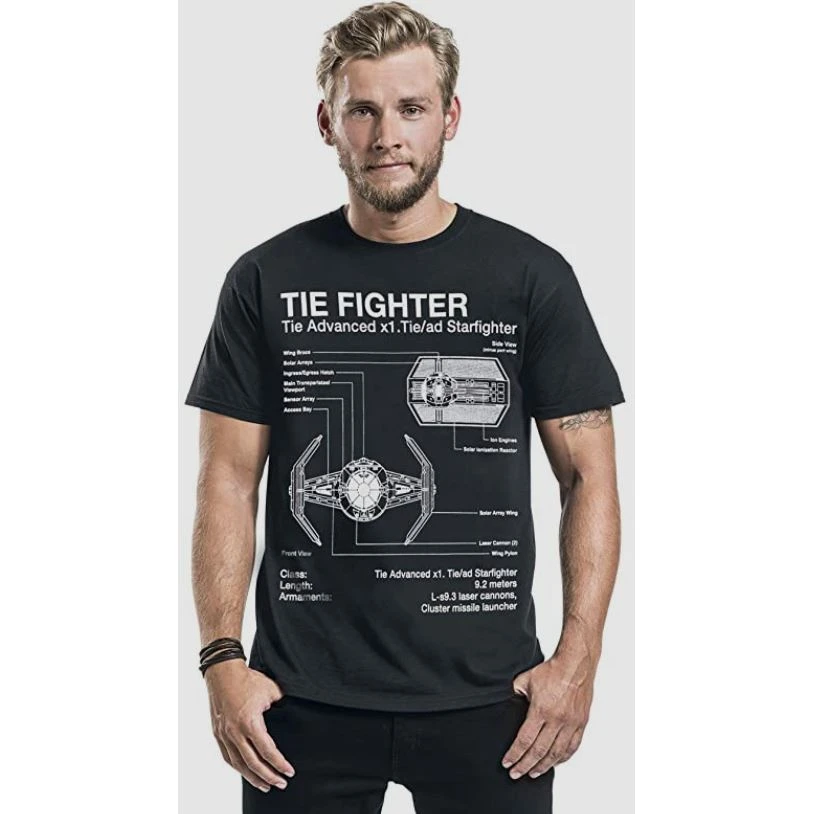 Star Wars T-Shirt Tie Fighter Blueprint with following features: Color: black, Material: 100% cotton, Pattern: plain 100% Cotton Regular