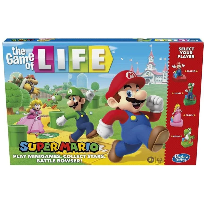 INSPIRED BY SUPER MARIO: it’s The Game of Life board game with an exciting twist featuring Super Mario video game-inspired characters, artwork and gameplay MOVE THROUGH THE MUSHROOM KINGDOM: players move around the gameboard as Mario, Luigi, Peach or Yoshi. They choose their path and which areas to explore as they go through the Mushroom Kingdom BATTLE BOWSER: unlike the classic The Game of Life board game, this edition isn’t about money or retirement. The ultimate goal in this children’s board game is to defeat Bowser MINIGAMES AND STARS: use coins to buy stars for a boost in the battle against Bowser. Compete in fun minigames in a face-off for prizes, and power up with Items and Companions FUN FAMILY GAME: The Game of Life: Super Mario Edition board game is a great choice for game night with the family, and it’s a fun indoor game for children aged 8 and up, for 2-4 players